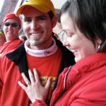 After all the excitement was over, I told my family and friends via text message that Rick had proposed – but most of them already knew! It was then I realized how long Rick had been planning this, and how many people were in on it. Things started clicking in my head – my family wasn’t supposed to come up and surprise my sister in law, they were coming to celebrate our special day; Rick told me the seat upgrade story to try and make it a bigger surprise; and he wouldn’t let me put my arm in his because he was so nervous… It still amazes me to this day how perfect it was because of how well he planned everything. A girl couldn’t ask for a better proposal, or game as the Chiefs won in overtime!